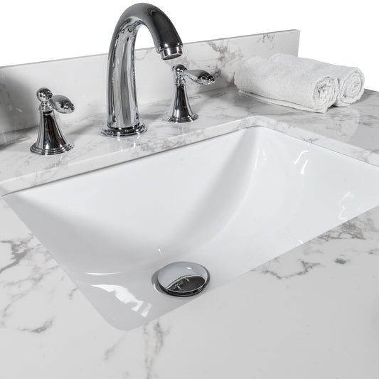 31 inches bathroom stone vanity top calacatta gray engineered marble color with undermount ceramic sink and single faucet hole with backsplash