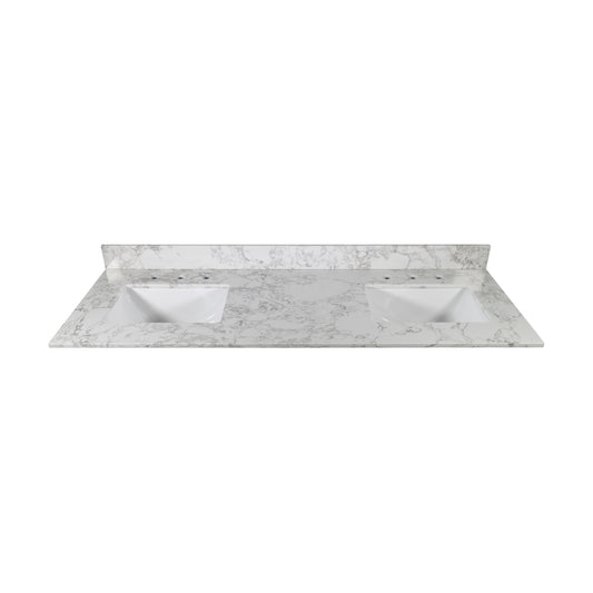61''x22" bathroom stone vanity top engineered stone carrara white marble color with double rectangle undermount ceramic sink