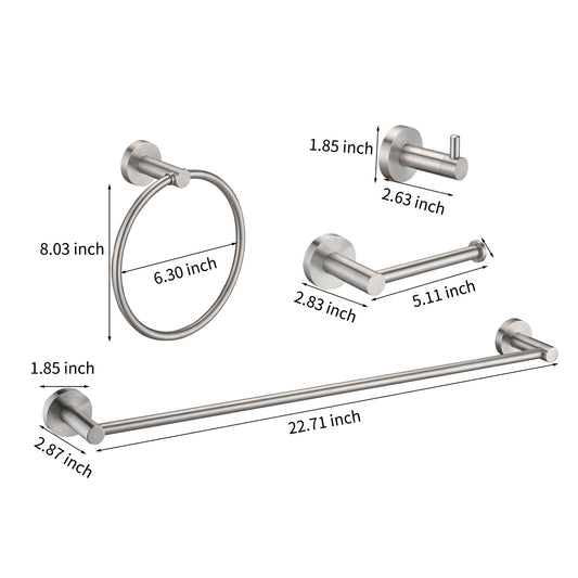 Brushed Nickel Bathroom Towel and Hardware Set 4 Pieces