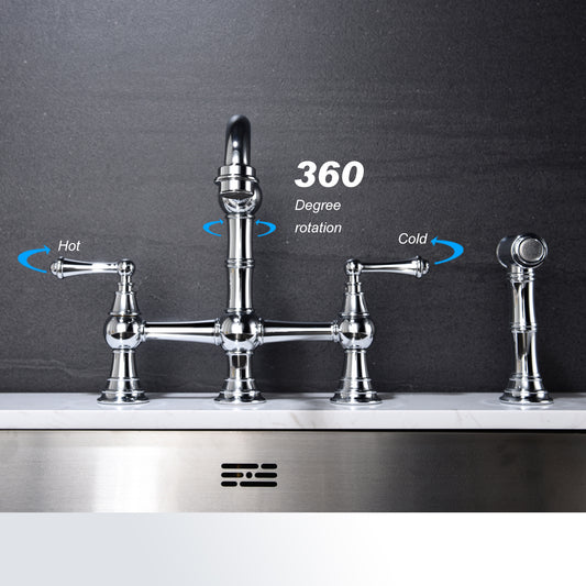Bridge Dual Handle Kitchen Faucet with Side Sprayer