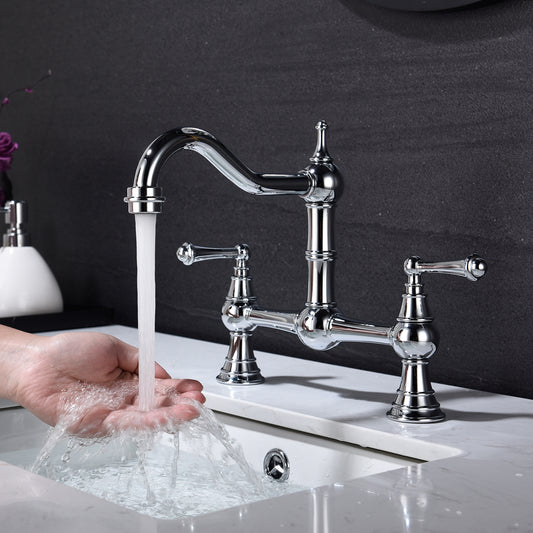 Double Handle Widespread Kitchen Faucet with Traditional Handles,Bridge Dual Handles Kitchen Faucet,Kitchen sink faucet