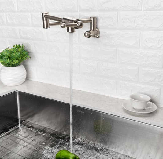 Lordear Wall Mount Kitchen Faucets Stainless Steel Folding Stretchable Double Joint Swing Arm