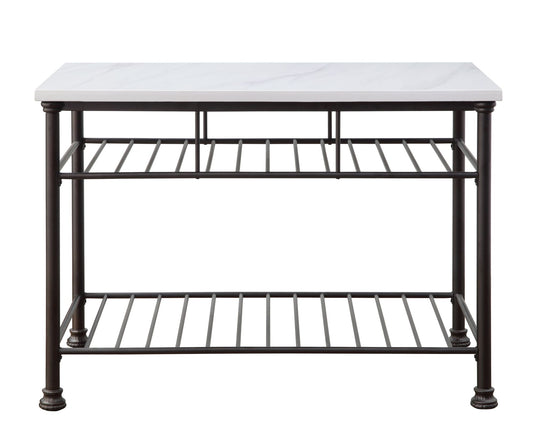 Kitchen Island; White Cultured Stone & Gray Finish YF