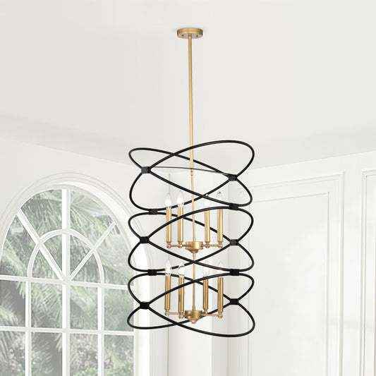 Transitional Gold/Matte Black Metal Chandelier Fixture; 8 lights ; 2-Tier-Candle Ceiling Light